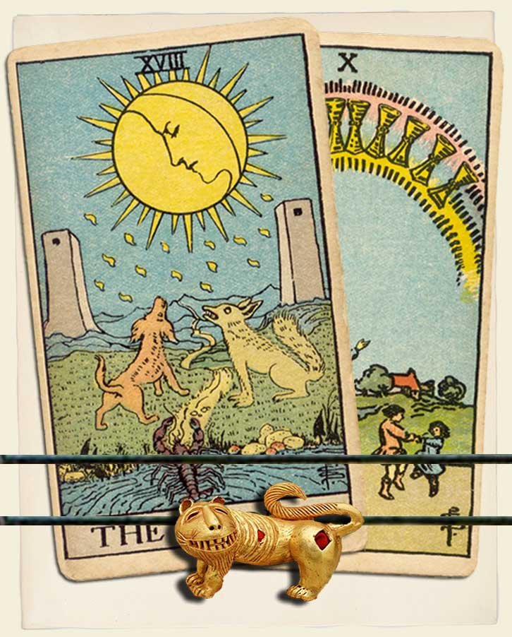 The Moon and Ten of cups combination provides an insight into an event in your future, which is influenced by the arcane tarot forces of (A) COMPLEXITY and (B) DIVINE LOVE. What’s the advice of this pair? The Moon represents a difficult emotional journey that often requires one to confront their fears. This card indicates that you may need to do so during this time period. The Ten of cups represents deep union with someone who brings out the best in you – emotionally, mentally and even spiritually. This energy can be very complex, though, because it can also create confusion about what is real or fake. Be sure not to confuse complicating factors with divine love as represented by the Ten of cups