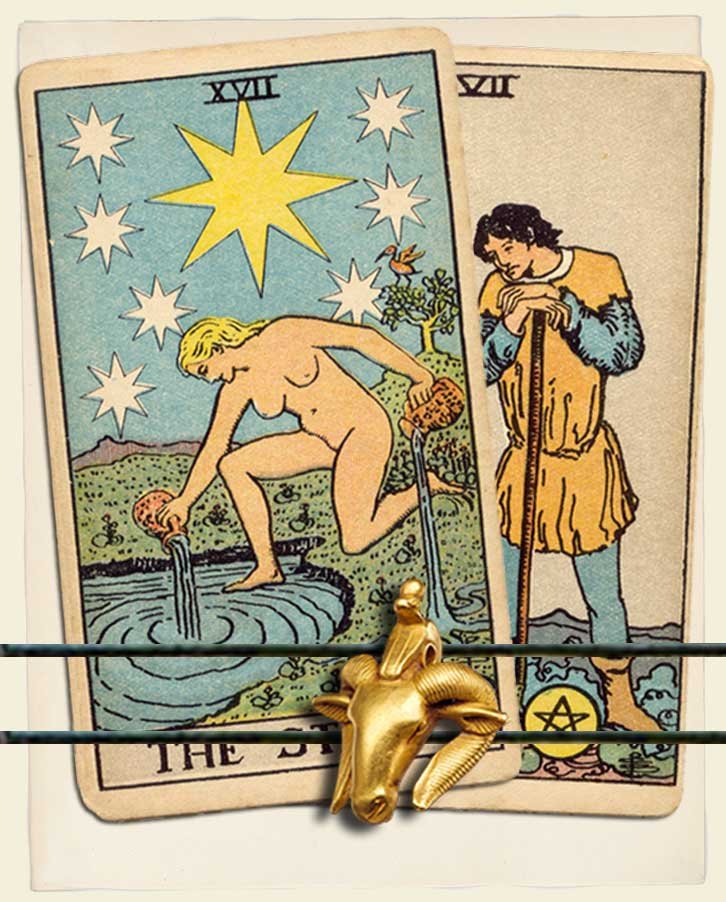 The Star and Seven of pentacles combination gives an insight into your immediate future, which will come to pass from the combined effect of (1) inspiration (effect of The Star) and (2) progress (effect of Seven of pentacles). What’s the advice of this pair? You may be feeling stuck in a situation or relationship that is holding you back. The Star represents remaining true to yourself even under difficult circumstances. It can be a reminder not to give up on something important in your life. However, it also carries the risk that things won’t work out as well as you hoped. The presence of the Seven of pentacles indicates that there is plenty you could do to improve matters, but lack the necessary motivation or resources. This combination energy is urging you to take action now so things don’t slip further away.