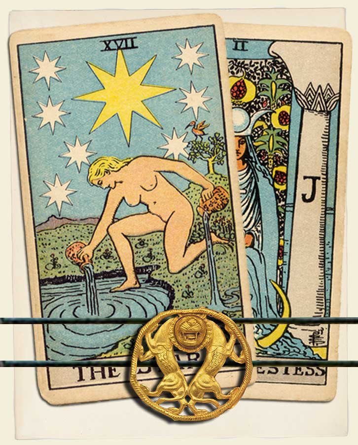 The Star and The High Priestess tarot combination gives a glimpse into an event in your future. It will arise from the combined effect of: (I) PURPOSE (arcane effect of The Star) and (II) INTUITION (effect of The High Priestess). What does this card combination mean for you in practice? You have great faith and hope for the future. You are also very intuitive and have a strong connection to your subconscious mind. This combination suggests that you are able to manifest whatever your heart desires when you are your truest self. Figure out what your mission is in this lifetime. Care to spare some of your sparkle to be someone else’s guiding light?