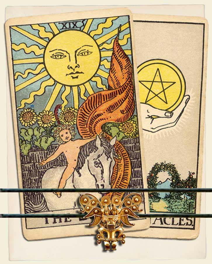 The Sun and Ace of pentacles tarot combination gives an insight into your near future, which is influenced by the tarot forces of (I) VITALITY (from The Sun) and (II) ABUNDANCE. Those two cards want to show you that you can both keep your childlike qualities whilst being more responsible. It’s incredible to step into a new era of life, but in doing so, we can still be a child at heart from time to time.