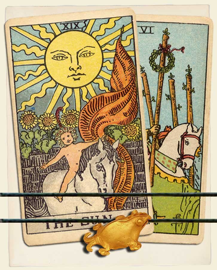 The Sun and Six of wands combination provides an insight into your immediate future, which is influenced by the arcane tarot forces of (A) Happiness and (B) Triumph. What’s the advice of this pair? The Sun represents a new beginning that will bring you happiness. This energy often brings with it lots of positive exposure, so don’t get too caught up in the spotlight. The Six of wands indicates that there may be some kind of victory to celebrate soon. You have worked hard on something important, and it has paid off for you. Take time to enjoy yourself and share the moment with those who care about you.