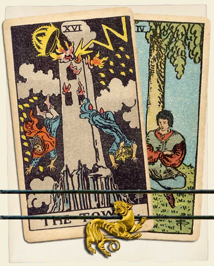 The Tower and Four of cups combination provides an insight into an event in your future, which is influenced by the arcane forces of Sudden Change and Reevaluation. Those two cards send you down to earth with a crash. You are disconnected and rival any potential offer of happiness with negative thoughts. We can pause and reflect, but when too much happens at once, it is hard to see a way out. You will when you are ready, but you must constantly look.