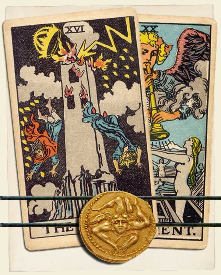 The Tower and Judgement combination provides an insight into a major event in your future, which is influenced by the tarot forces of (I) Trauma (from The Tower) and (II) Reflection (from Judgement). These cards in combination call on you to reflect on everything that has led you to this moment. If change is afoot and you are unsettled, then why? Time to dig deep. A solid pairing can be a cause for concern in you have many questions to ask yourself. Looking deeper into your soul and result in great cosmic shifts that you should prepare for.
