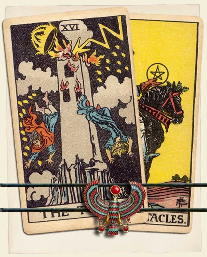 The Tower and Knight of pentacles combination is a sign that two forces: I) Sudden Change (The Tower) and II) Practical (Knight of pentacles) are influencing you at the moment. Those two cards are not ideal when it comes to stability. Of course you may wish and yearn for a life planned, but your Tower moment awaits! The pace of life does not always go as slow as you wish, You must be prepared for this and move accordingly.