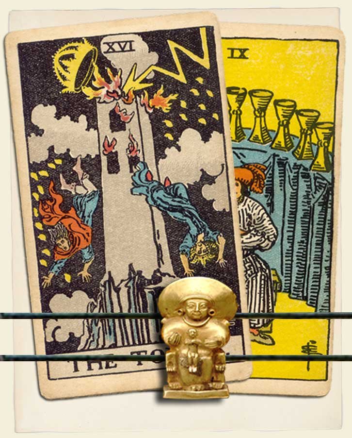 The Tower and Nine of cups combination means that tarot influences: 1) Trauma and 2) Wish Come True are a guiding force on your decisions. What’s the advice of this pair? The Tower represents high levels of stress, often caused by fear or anxiety. This card indicates that you may be under too much pressure and need to take some time off to rest and rejuvenate. The Nine of cups is sometimes called the “happiest place on earth” because it represents wish fulfillment. In combination with the stressful energy in which you find yourself, this can create unrealistic expectations that will lead to disappointment. Take care not to let these disappointments ruin your day-to-day life but instead use them as an opportunity for personal growth.