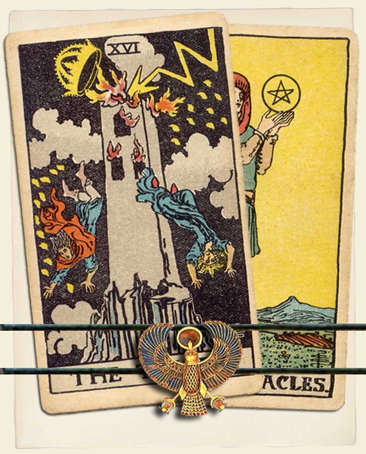 When The Tower and Page of Pentacles come together in a love reading, it is not the most positive combination. The Tower represents a major upheaval or change, often brought on by an important lesson learned. It can be very difficult to handle and may indicate something unhealthy or dangerous in your relationship that needs to be addressed.