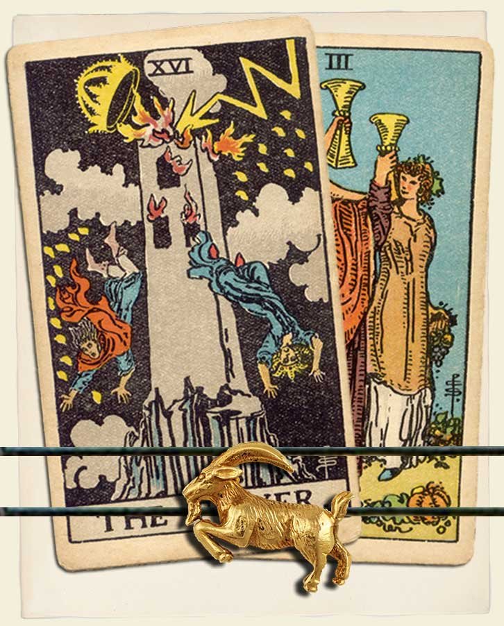 It’s important to take stock of your relationship at this point and consider if there are any illusions or weak foundations that may be causing trouble down the line. With such an awkward card as The Tower appearing in your love reading, disappointment or even trauma may be inevitable.