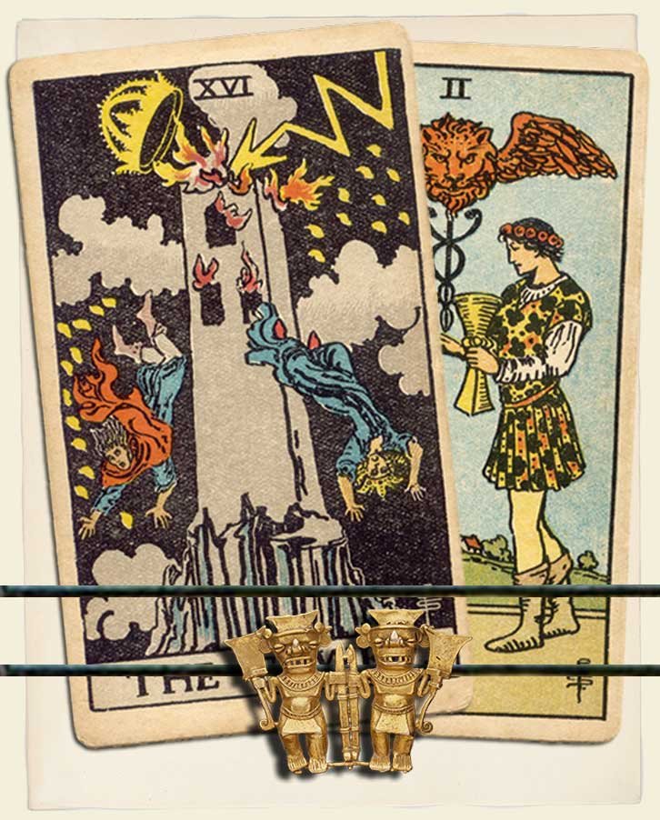 The Tower and Two of cups combination gives you a hint about your near future, which is influenced by the forces of DESTRUCTION and JOINING FORCES. What’s the advice of this pair? The Tower represents a powerful new beginning that will create profound change in your life. This energy can be destructive because it often creates chaos. The presence of the Two of cups indicates that there may be some communication issues around this new beginning. If so, working through them will allow you to take advantage of what The Tower has to offer.