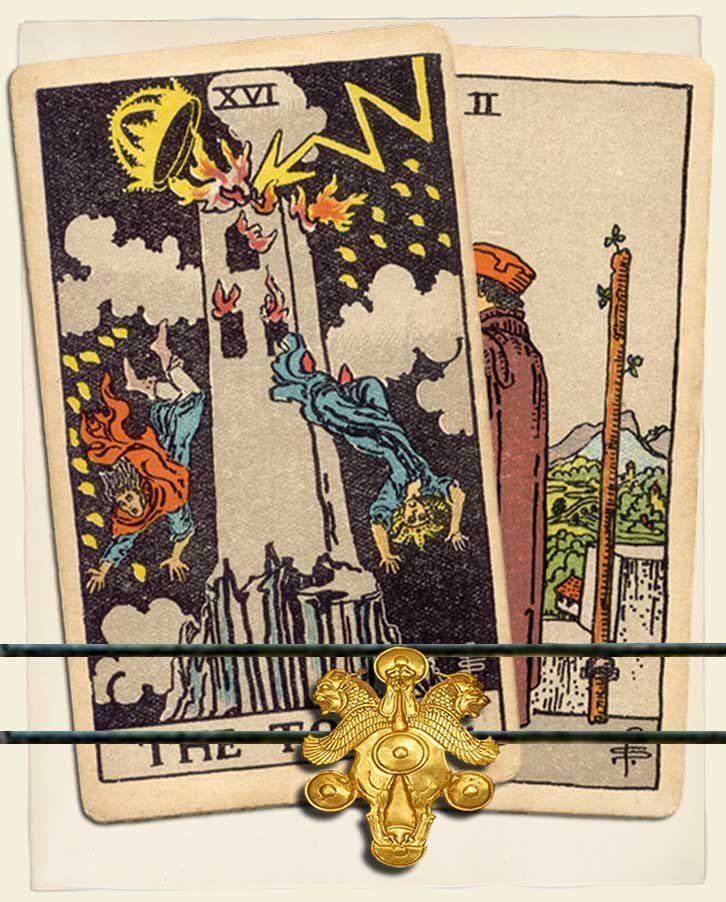 The Tower and Two of Wands combo interpretation
