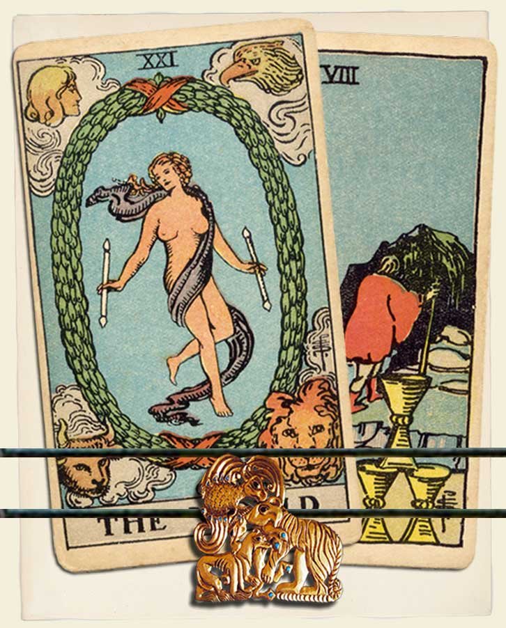 The World and Eight of cups combination means that two tarot influences: A) Wholeness (The World) and B) Abandonment (influence of Eight of cups) govern your life decisions today. What’s the advice of this pair? The World represents a balanced, healthy place to live. It is an energy that allows you to be at peace with yourself. This card indicates that you may have been feeling lost or even depressed, but now you are on the path to recovery. You need to embrace wholeness in order for things to improve in your life. The Eight of cups represents walking away from something important in your life without fully processing what it means for you as a person and how it affects other people who care about you.