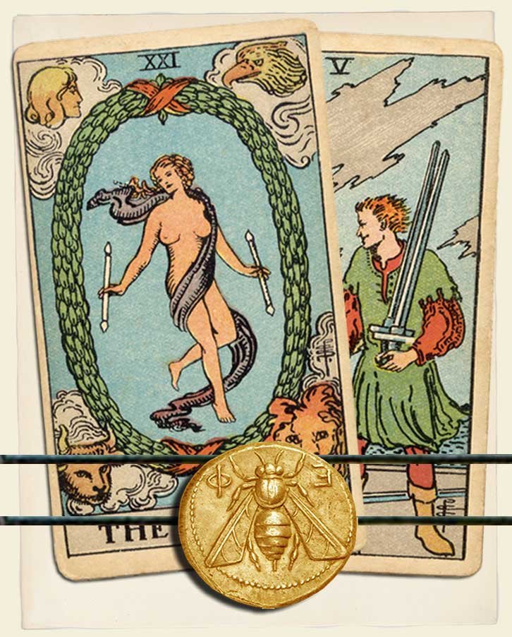 The World and Five of swords combination indicates that two arcane dynamics: 1) Integration and 2) Winning At All Costs currently guide your decisions. The winds of change are on the horizon with this pairing of cards. The World appears when we are finishing cycles & beginning new ones, it acts as a reminder that there are many new opportunities out there. However, its partner the 5 of Swords can indicate a feeling of conflict and resistance to this new change. Remember that it is not you against the world, and that some flexibility, or even a shift in perspective may open your eyes to bigger and brighter opportunities than the ones you are holding on to.
