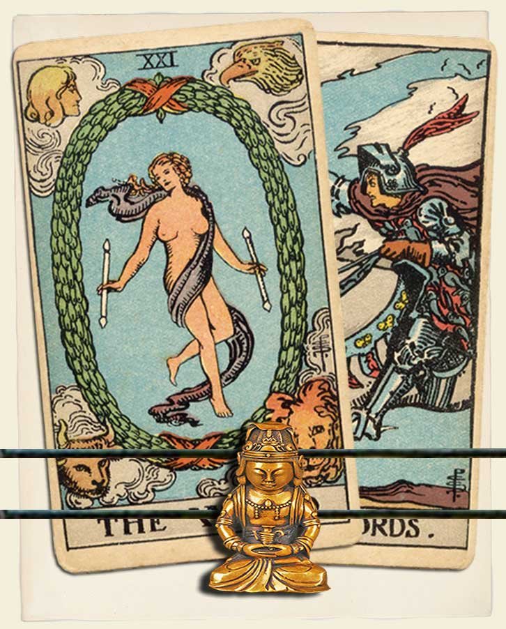 My dear querent, the World and Knight of Swords combination is an interesting one indeed. It seems to represent a mixture of both positive and negative energies when it comes to love and relationships.