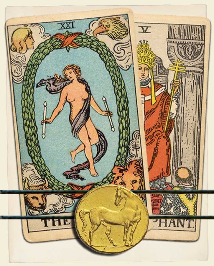 The World and The Hierophant tarot combination is a sign that two tarot effects: 1) Integration and 2) Tradition currently guide your decisions. This pairing indicates that you may be going through a time in which you are broadening your horizons, and challenging prior beliefs. The conventional yet knowledgeable Hierophant, will soon be seeing the world from a new point of view. Together, the cards invite you to immerse yourself in a new culture or experience that may give you a new perspective.