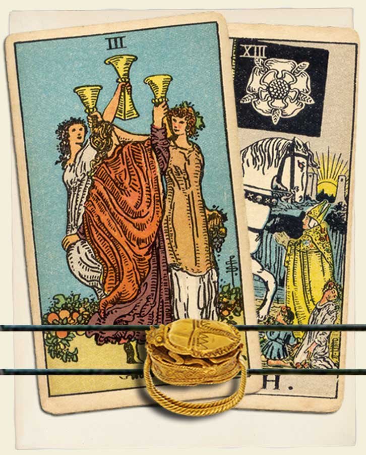 Three of cups and Death tarot combination means that two arcane momenta: 1) Celebrations (influence of Three of cups) and 2) Change (influence of Death) are affecting you today. To put it differently, it means that good news will cause a profound transformation in you. What’s the advice of this pair? The Three of cups represents positive emotions flowing freely among a group of friends, often in celebration. You’ve received some good news, and the people around you are happy for you. The Death card indicates that this is the beginning of a major change in your life that will be difficult at times. Something will have to “die” and be reborn, in order for you to take full advantage of the benefits of this transformation. Enjoy your celebrations, then prepare for the crucible you’ll have to run.