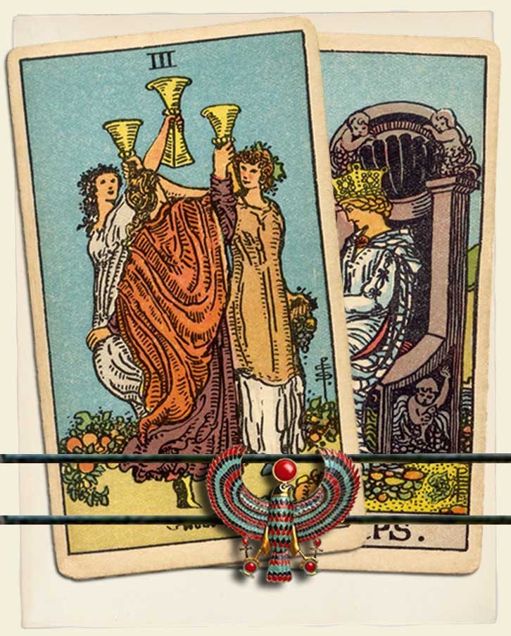 Three of Cups and Queen of Cups combo interpretation
