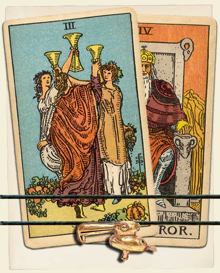 Three of cups and The Emperor combination means that two tarot influences: I) Friendship (Three of cups) and II) Protection (The Emperor) have influence on you at this moment. What does this card combination mean for you in practice? You like to dive in and make snap decisions that can sometimes backfire. Your close friends recognize this about you, and whilst they love you hard, they also want to protect you with the same strength. That is a good sign, because it means they care about you enough to intervene when something isn’t going right. Let them, and enjoy the feeling of security.