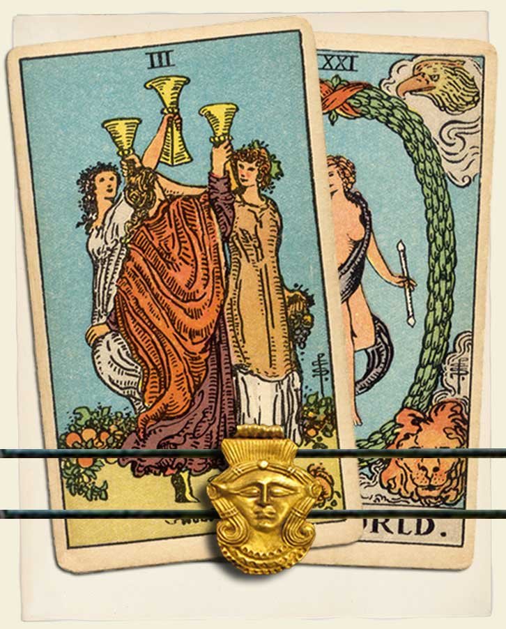Three of cups and The World tarot combination gives you a divination about an event in your future, which will come to pass from the combined effect of (1) COLLABORATIONS (effect of Three of cups) and (2) FULFILMENT (effect of The World). This indicates that the friendships and the community around you will give you a sense of fulfillment and harmony. In order to be the best version of yourself, try listening to others as well. They might give you new perspectives and points of view you would have never take into consideration before. Collaborations are beneficial in every aspect of your life, as they add precious value to it. Thanks to them you will not just survive, you will flourish.
