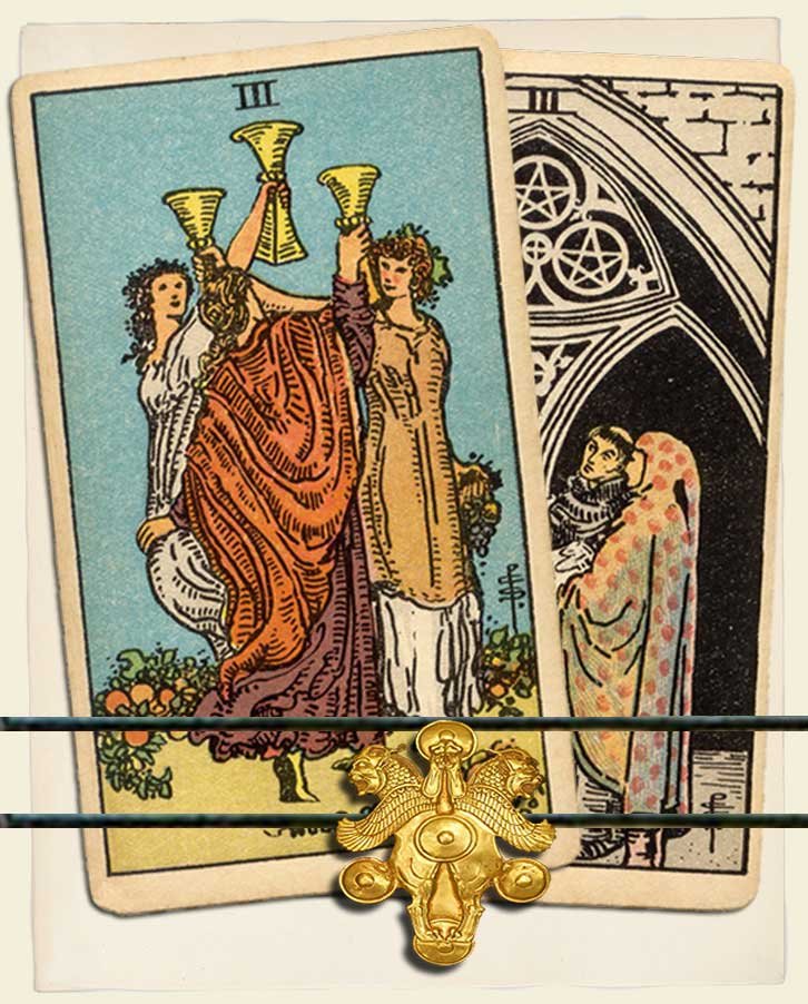 Here you can find the full lists of Three of cups or Three of pentacles combinations, that go before and after your current combo.