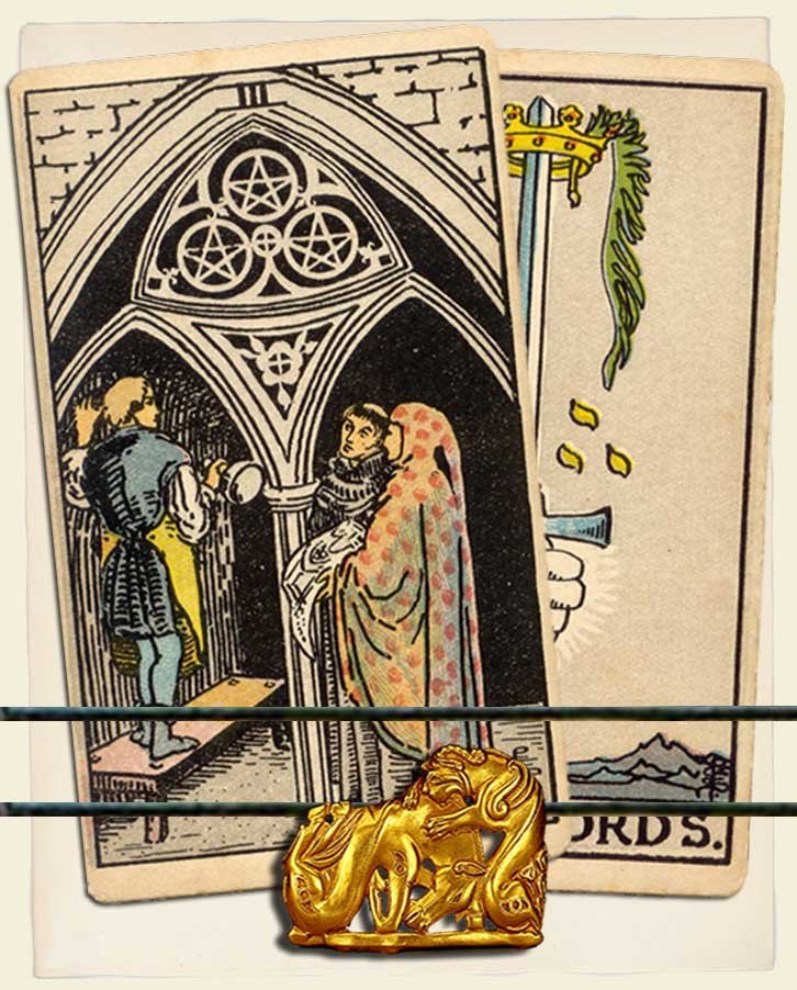 Greetings, young one. You seek wisdom on matters of the heart and relationships. The cards have revealed to us a combination of Three of Pentacles and Ace of Swords, which is an undetermined sign for love and relationships.