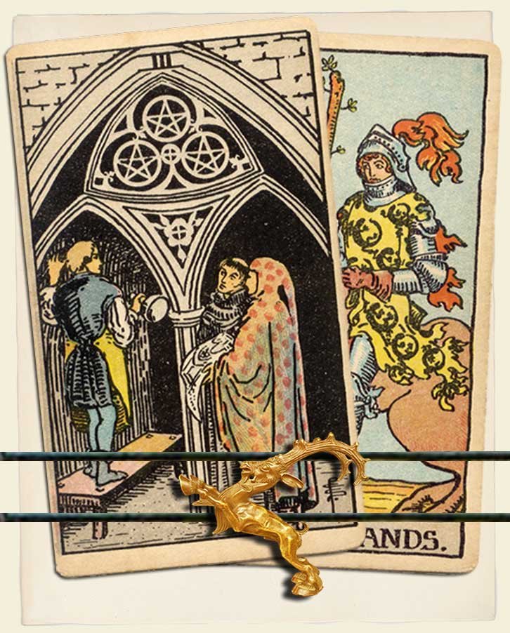 Three of Pentacles and Knight of Wands combo interpretation