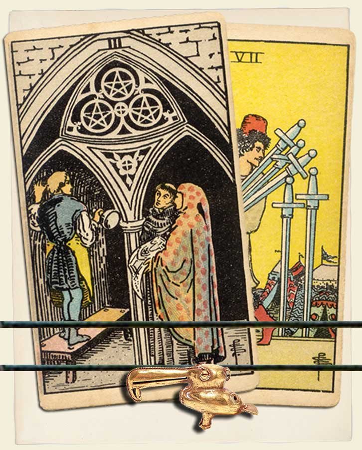 Yo, listen up. So when you get the Three of pentacles and Seven of swords combo in love and relationships, it’s not lookin’ good. It means that some shit is about to go down, and it ain’t gonna be pretty.