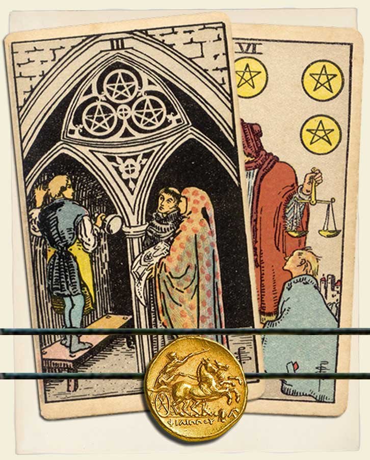 Hey, Combotarot Nation! Today we’re talking about the Three of pentacles and Six of pentacles tarot combination in relation to love and relationships. This combo is considered an unsure sign for matters of the heart.