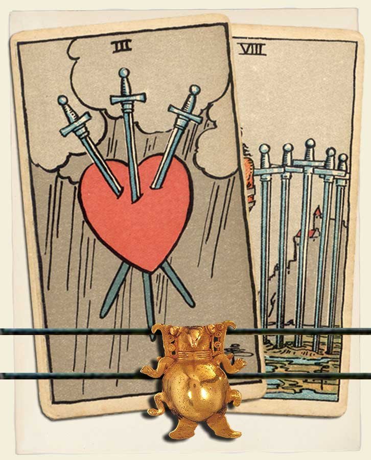 Hey guys! So, the Three of Swords and Eight of Swords combination is definitely not a good sign for love and relationships. It basically means that you’re going to go through some emotional pain (Three of Swords) while feeling trapped without any external support (Eight of Swords).