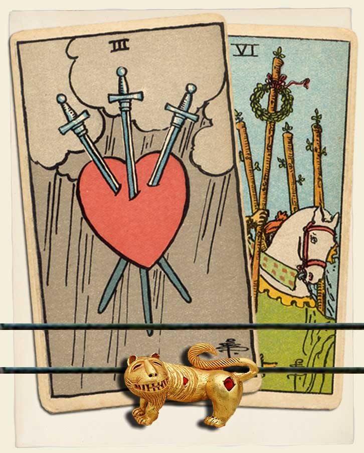 Oh, my dear querent, the combination of Three of Swords and Six of Wands is a complicated one indeed. It speaks to your current emotional state and what is coming up for you in the near future.