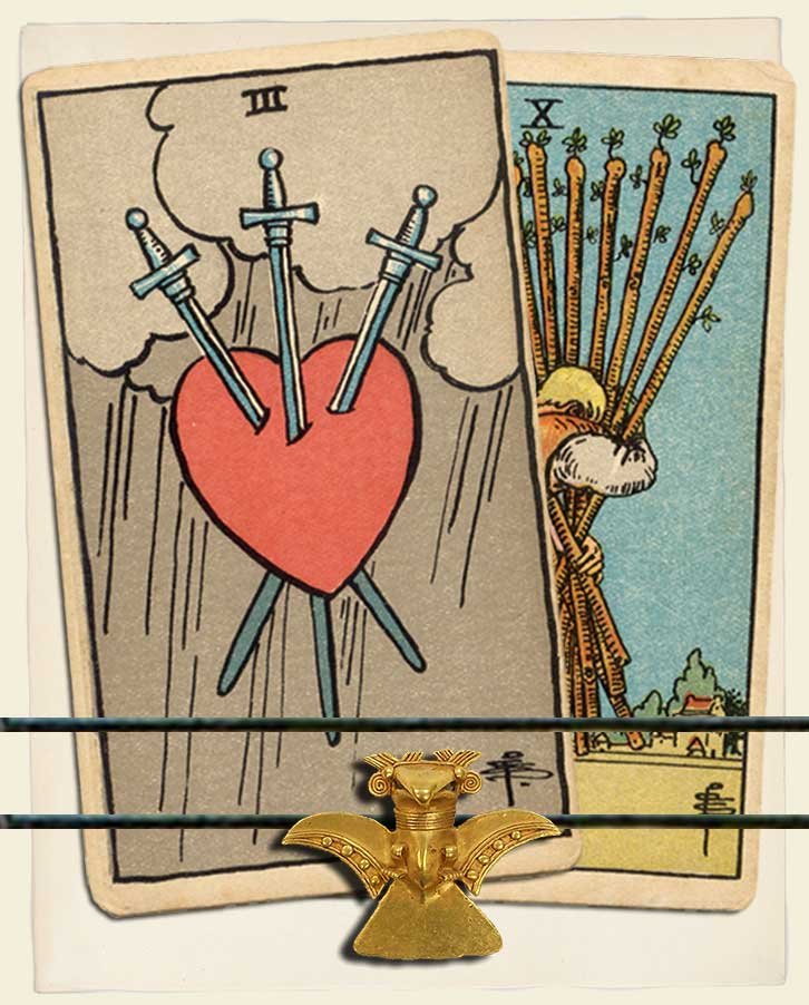 Three of Swords and Ten of Wands combo interpretation