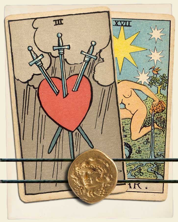Three of swords and The Star tarot combination means that arcane tarot forces: A) Emotional Pain (Three of swords) and B) Purpose (The Star) are influencing you at the moment. In other words, it means that you have been through a lot in your life and are therefore in emotional pain. You are blaming and beating yourself up. You have set a goal for yourself and you act according to this goal. However, your emotional side does not allow you to achieve it. Overcoming this will change many things in your life.