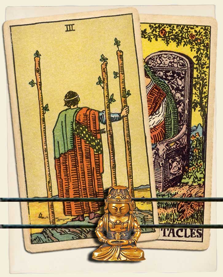Three of wands and Queen of pentacles tarot combination means that two tarot influences: 1) MOMENTUM (from the side of Three of wands) and 2) PROVIDING FINANCIALLY (from the side of Queen of pentacles) are a guiding force on your decisions. To put it differently, it indicates that you should overcome obstacles and remain true to your goals. The combination of the Three of Wands and the Queen of Pentacles advises that you keep going forward. Your current path is important because you need to provide financial comfort for your loved ones.