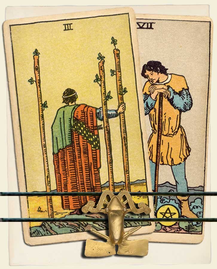 My dear child, when it comes to matters of the heart, we must always remember that love is not a one-time event but rather a journey. The Three of wands combined with the Seven of pentacles in tarot can be an unsure sign for love and relationships. It means that two mystic forces are exerting their influence on your life’s choices: momentum and perseverance.