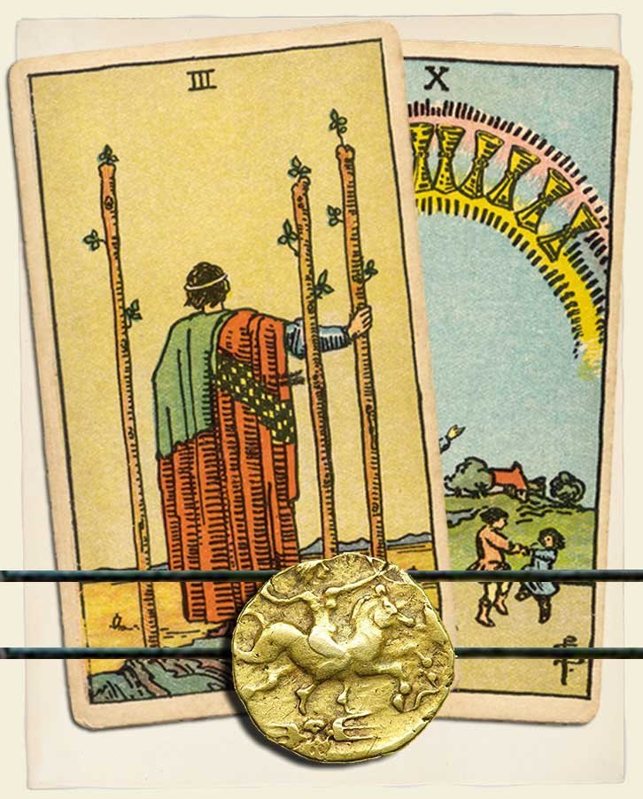 The combination of Three of wands and Ten of cups is a great sign for love and relationships. It provides an insight into the outcome in your future, directed by the guiding influences of overseas opportunities and blissful relationships.