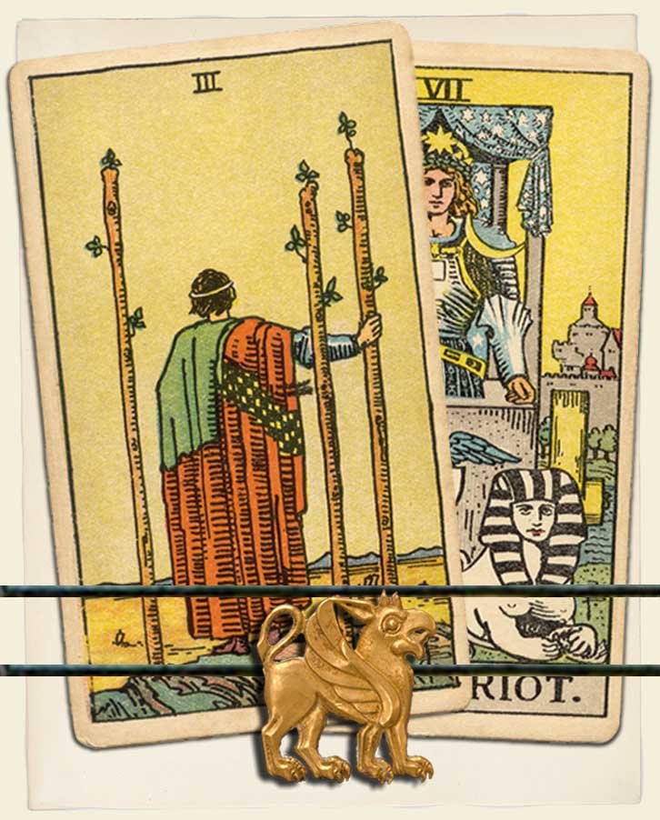 Three of wands and The Chariot combination indicates that two mystic forces: (1) Progress and (2) Control have influence on you today. What’s the advice of this pair? You are moving forward in your life, but there is a lot to do. The Three of wands represents working long hours under tight deadlines. This card indicates that you may be overworking yourself. It’s important to set clear goals for yourself so you know where to draw the line between being productive and being burned out. If you don’t take steps to manage your workload, it will control you instead of vice versa.
