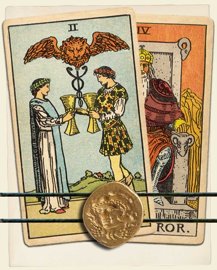 Two of cups and The Emperor combination means that two arcane forces: 1) unified love and 2) authority have influence on you at this moment. It’s simple really: in the coming months you will submit to a new, less cruel master. Thus far, you’ve gone through life wholly subservient to the cold law of reason. But that will soon be coming to an end—and none too soon. You’ve been craving spiritual satisfaction and, if these cards are to be believed, that should be just around the corner. All you have to do is have the courage to submit—only this time, to yourself.
