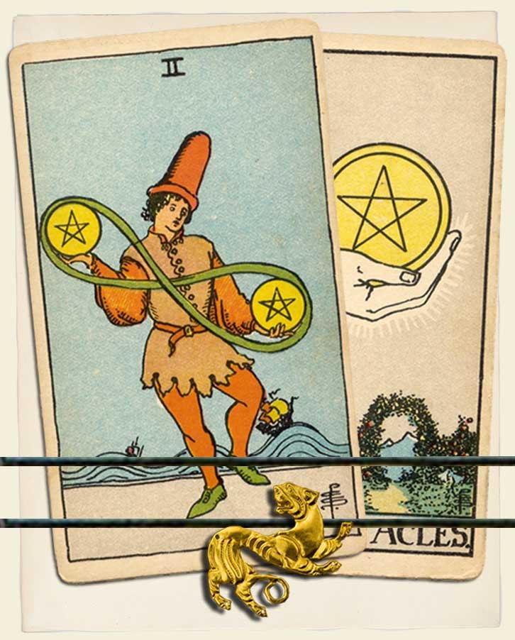 Two of Pentacles and Ace of Pentacles combo interpretation