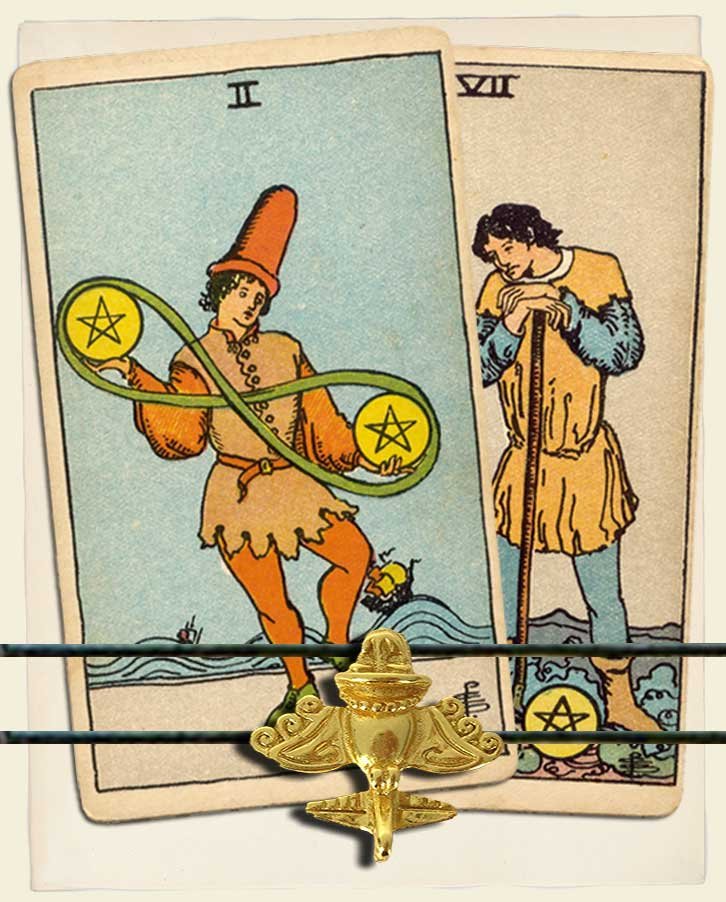 Two of Pentacles and Seven of Pentacles combo interpretation