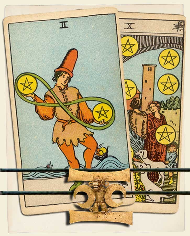 Two of Pentacles and Ten of Pentacles combo interpretation