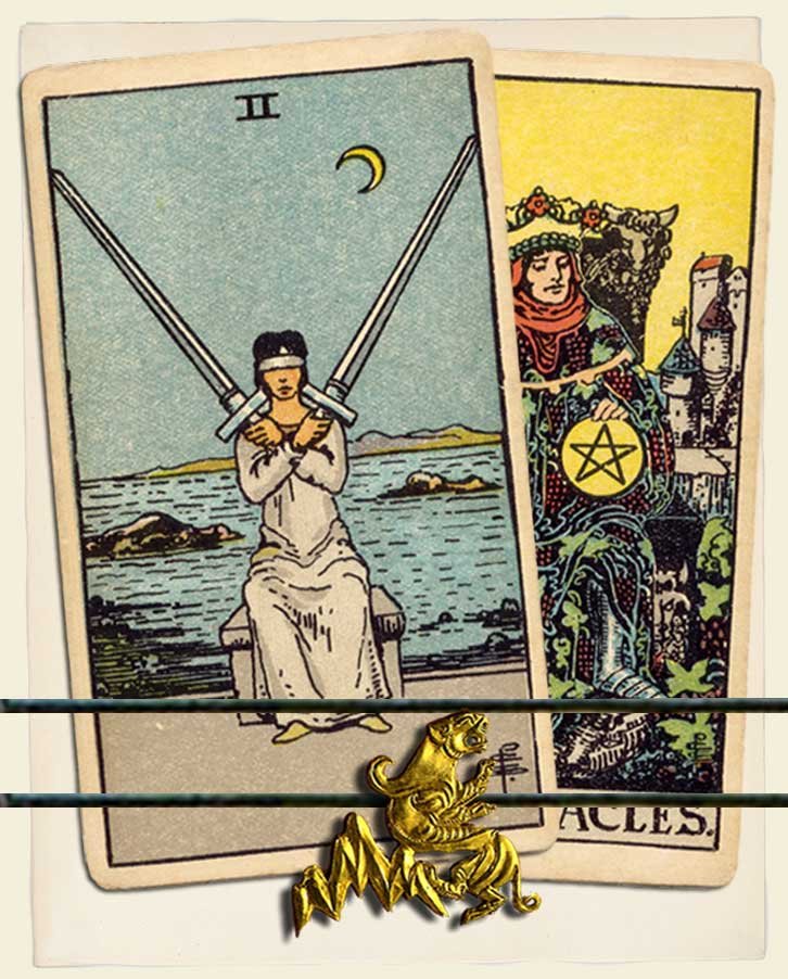 Well, my dear, the Two of swords and King of pentacles combination for love and relationships is quite a complex matter. You see, this combination represents an intersection between two opposing forces: Denial and Security. It suggests that there may be some difficult choices to make in the near future, accompanied by indecisiveness and denial.