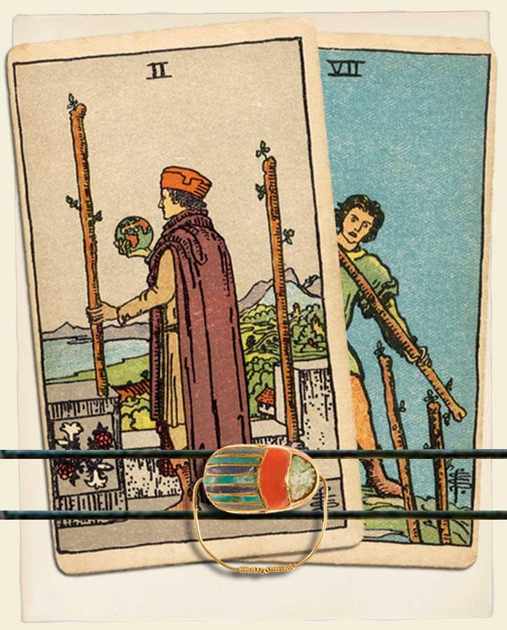 The Two of Wands interpretation emphasizes planning, exploration aspirations, risks novel experience and investment which can be applied to your love life by developing a plan for forward action that precipitates important change in your relationship or emotional state-of-mind. If you’re in an uncomfortable emotional situation then this card provides an opportunity for developing plans to improve your state-of-mind.