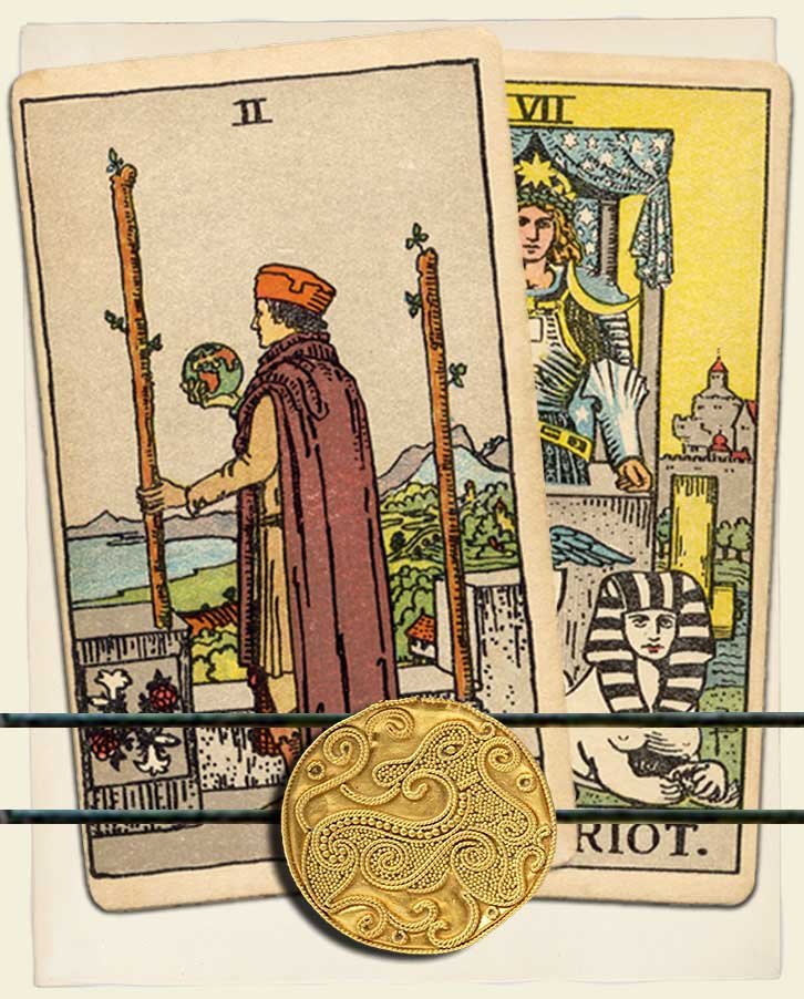 Two of wands and The Chariot combination means that two mystic forces: 1) Discovery and 2) Success govern your life decisions today. You are on the verge of a new beginning, but you need to be ready for it. It is not going to just happen by itself when the Two of Wands meets the chariot from Greek mythology, so make sure you have done your homework. If you haven’t yet taken any steps towards making this change in your life, do so now before someone else takes advantage of what could be an excellent opportunity for them. Don’t let yourself get left behind.