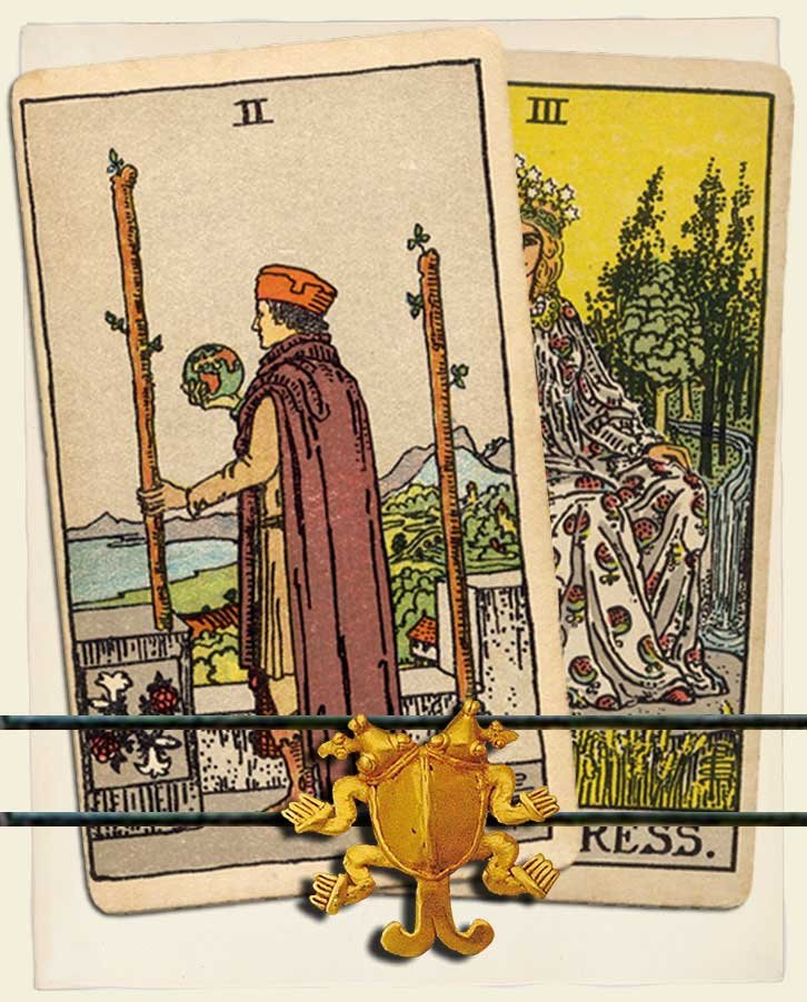 Oh, my dear! The Two of Wands and the Empress together speak to a wonderful development in your love life. You see, the Two of Wands indicates improvement – pushing past any barriers that may have been put around you at a young age. It’s time to live the life you want and manifest your hopes into reality! And with the influence of the Empress – divine feminine energy at its finest – you can expect true emotional support and potent creative potential in your relationships.