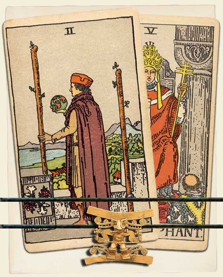 Hey, Combotarot Nation! Today we’re talking about the Two of Wands and The Hierophant in relation to love and relationships. This combination is actually considered a favorable sign for all you lovebirds out there.