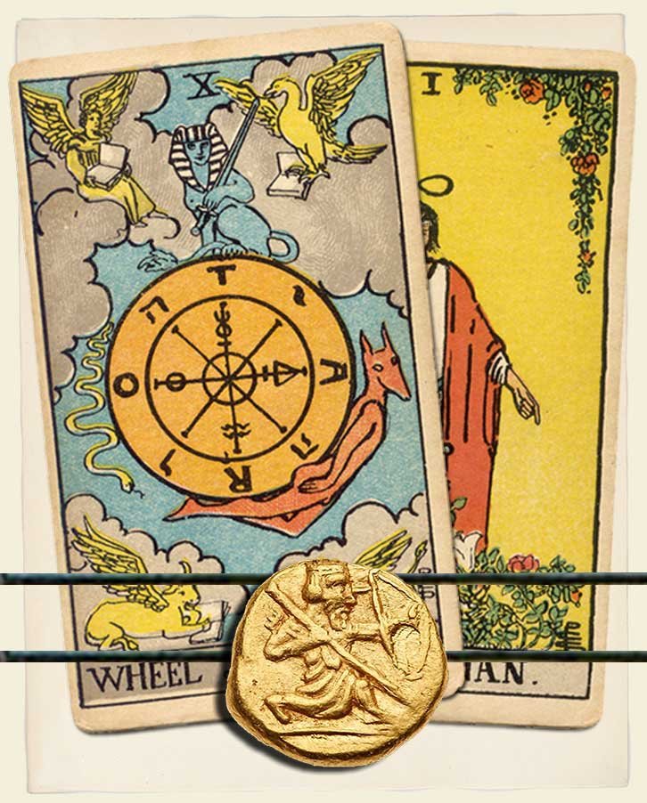 Wheel of Fortune and The Magician combination gives an insight into an event in your future. It will come to pass from the combined effect of (A) A TURNING POINT (effect of Wheel of Fortune) and (B) DESIRE (effect of The Magician) as the Wheel shifts its position and the very best of your capabilities are suddenly in demand. It isn‘t every day that an entire small town urgently needs a flute player that can enchant ten million, disease-carrying mice to dance off into a distant land where they will never be seen again, but today could be just that day for you. Even if your greatest talent is an ability to count the birds in a migratory pattern, or hearing colors, your abilities will be urgently needed. Brace yourself. You will be in demand.